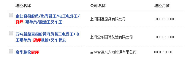 厨师招聘信息